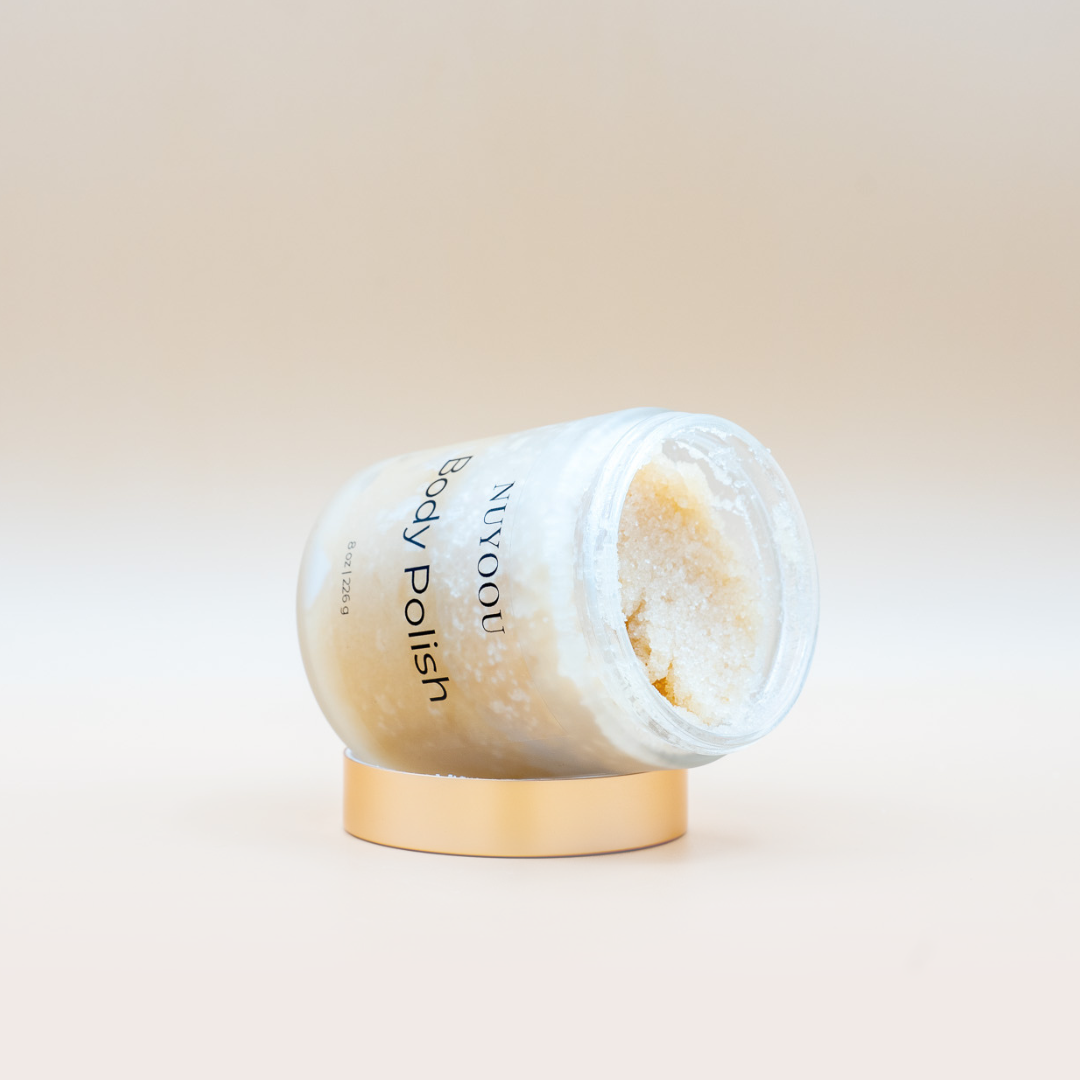Refine. Renew. Reveal Your Natural Glow. The NUYOOU Luxury Body Polish is an indulgent, all-organic exfoliating treatment designed to gently smooth, soften, and renew the skin without stripping its natural moisture. Crafted with intention and care, this polish transforms your shower into a grounding ritual of self-care — one that honors your skin and your well-being. Unlike harsh exfoliants that leave skin dry or irritated, our sugar-based polish melts into the skin as you massage, delicately lifting away dull, dry skin while nourishing deeply. The result is skin that feels polished, hydrated, and visibly radiant. This product was created for women who want more than skincare — they want a moment. A pause. A return to themselves.